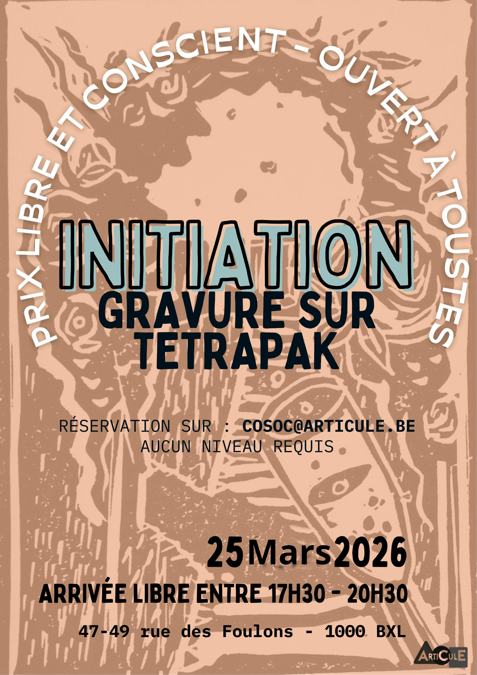 Second atelier de création de l'année, un peu d'expérimentation et du collectif nous vous invitons à un workshop pour découvrir la technique de gravure sur Tetrapak dans un cadre chaleureux.